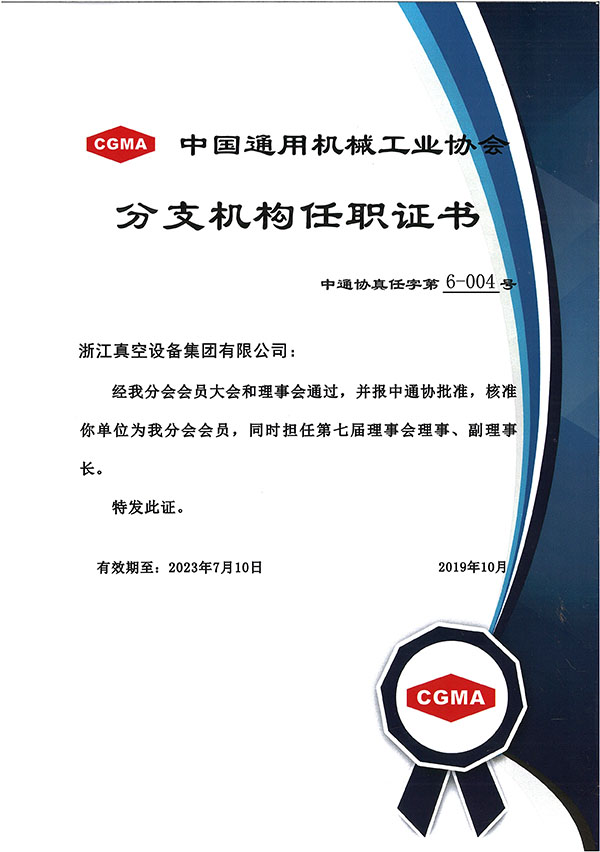 • 中國(guó)通用機(jī)械工業(yè)協(xié)會(huì)分支機(jī)構(gòu)任職證書